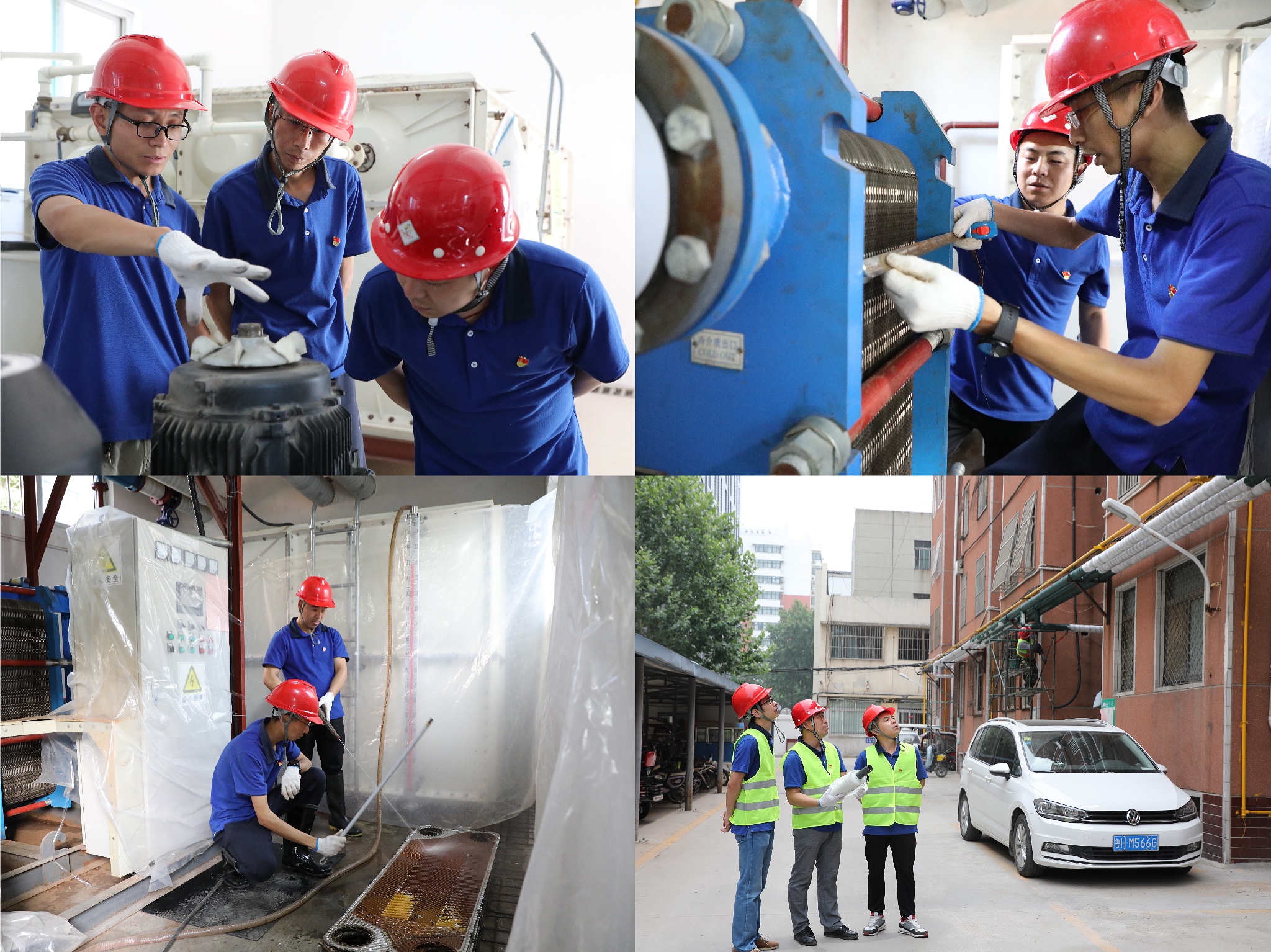 二、開(kāi)展專(zhuān)項(xiàng)技改檢修為高質(zhì)量供熱夯基壘臺(tái)。四和公司根據(jù)往年采暖期供熱運(yùn)行的情況,認(rèn)真分析研討,由黨員技術(shù)骨干牽頭成立了“冬病夏治”專(zhuān)項(xiàng)檢修小組,落實(shí)2021年度非采暖期供熱檢修方案,對(duì)供熱管網(wǎng)、換熱站及附屬設(shè)施進(jìn)行全面安全隱患大排查,發(fā)現(xiàn)問(wèn)題及時(shí)處理,廣大黨員干部以身作則、率先垂范,沖鋒在技改檢修的第一線(xiàn)。目前,已完成80余座換熱站以及2000多米二次網(wǎng)的保溫修復(fù)工作;更換銹蝕嚴(yán)重的樓前閥門(mén)160個(gè);完成板式換熱器、濾網(wǎng)、除污器清理工作50多處;管網(wǎng)消缺30余處;更換存在安全隱患的配電設(shè)施8處,完成20多座小區(qū)11800余戶(hù)的濾網(wǎng)清理工作。