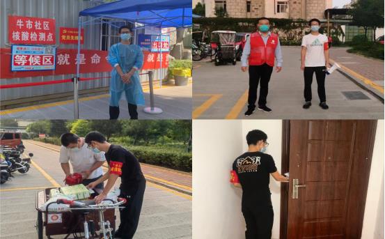 黨員陳騰在許莊街道東方御園社區(qū)錦繡花園協(xié)助開展上門核酸檢測、防疫消殺、夜間巡邏等工作