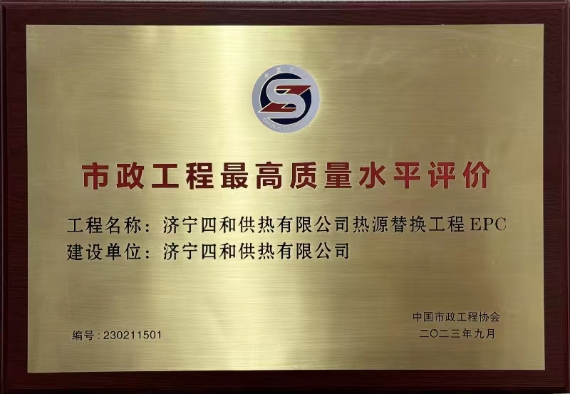 日前,中國市政工程協(xié)會(huì)發(fā)布《關(guān)于公布2023年度通過市政工程最高質(zhì)量水平評價(jià)工程的通知》,其中濟(jì)寧四和供熱有限公司熱源替換工程EPC名列其中。該獎(jiǎng)項(xiàng)由中國市政工程協(xié)會(huì)組織評審,是市政工程行業(yè)在工程質(zhì)量方面最高質(zhì)量水平評價(jià),代表市政工程行業(yè)同時(shí)期國內(nèi)先進(jìn)水平。