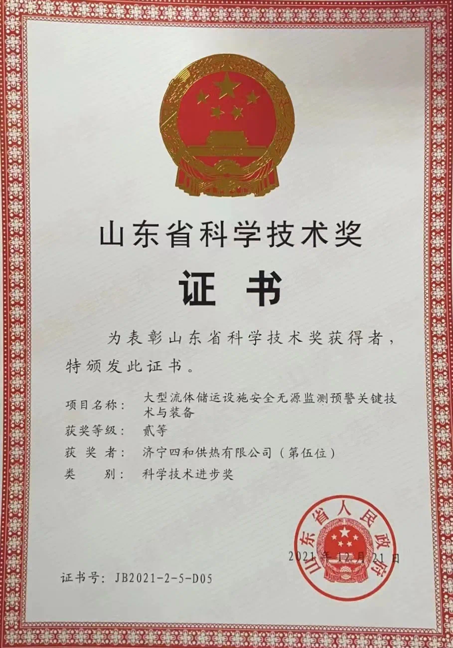 管網(wǎng)是供熱運(yùn)行的主動(dòng)脈和生命線。濟(jì)寧四和供熱有限公司熱源替換工程EPC中使用的“大型流體儲運(yùn)設(shè)施安全無源監(jiān)測預(yù)警關(guān)鍵技術(shù)與裝備”項(xiàng)目榮獲了“山東省科學(xué)技術(shù)獎(jiǎng)二等獎(jiǎng)”。目前,該項(xiàng)目成果已在公司所轄以華能運(yùn)河電廠、嘉祥電廠為熱源的多條供熱管道成功應(yīng)用,有效提高了管道輸送效率,取得了顯著的經(jīng)濟(jì)效益和社會(huì)效益。該技術(shù)創(chuàng)新的成功投產(chǎn),為供熱管網(wǎng)監(jiān)測系統(tǒng)的應(yīng)用推廣奠定了基礎(chǔ),為廣大熱用戶溫暖、平穩(wěn)過冬增添了一份保障。