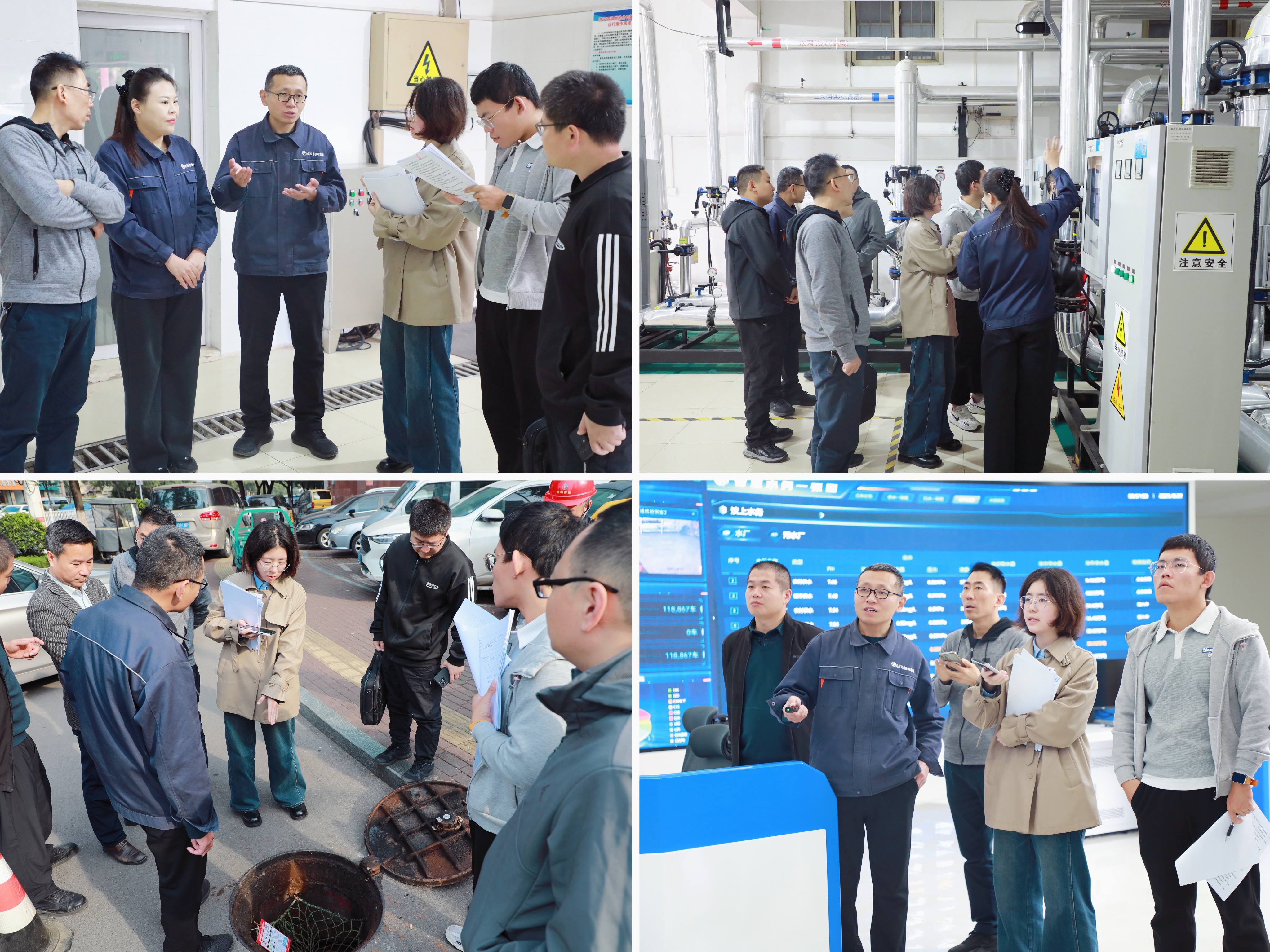 調(diào)研組一行首先深入四和供熱公司生產(chǎn)一線,認(rèn)真了解打壓期間的換熱設(shè)備運(yùn)行狀態(tài)、機(jī)組參數(shù)、安全防護(hù)措施以及小區(qū)周邊的管網(wǎng)鋪設(shè)細(xì)節(jié),針對老舊管網(wǎng)更新改造、安全風(fēng)險(xiǎn)隱患排查等關(guān)鍵基礎(chǔ)設(shè)施建設(shè)問題,調(diào)研組與相關(guān)負(fù)責(zé)人展開深入交流,逐一核對落實(shí)情況。隨后,調(diào)研組前往“數(shù)字公用”智慧城市運(yùn)營中心,重點(diǎn)考察“數(shù)智化”供熱管控平臺的建設(shè)與應(yīng)用成效。工作人員現(xiàn)場演示了系統(tǒng)的實(shí)時監(jiān)測、數(shù)據(jù)分析、智能預(yù)警和遠(yuǎn)程調(diào)度功能,通過大屏幕清晰展示了供熱管網(wǎng)的運(yùn)行狀態(tài)、各區(qū)域供暖溫度、管網(wǎng)壓力變化等數(shù)據(jù)。調(diào)研組對系統(tǒng)的智慧化水平給予高度評價(jià)并指出,智慧供熱的應(yīng)用為快速有序處置供熱問題提供了堅(jiān)實(shí)技術(shù)支撐,有效提升了供熱基礎(chǔ)設(shè)施的安全管控能力,為城市生命線安全工程建設(shè)提供了寶貴的實(shí)踐經(jīng)驗(yàn)。